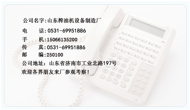 榨油机厂家联系人:张经理 电话:0531-69951886 手机:15066135200 地址:山东省济南市工业北路197号
